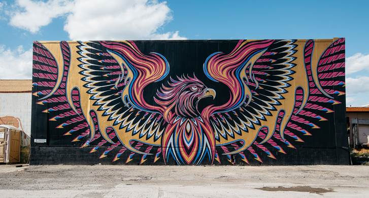 And just last year, as part of the NFL Draft, the City sponsored Detroit e he hange , featuring global artists creating socially and environmentally themed murals in Downtown Detroit: